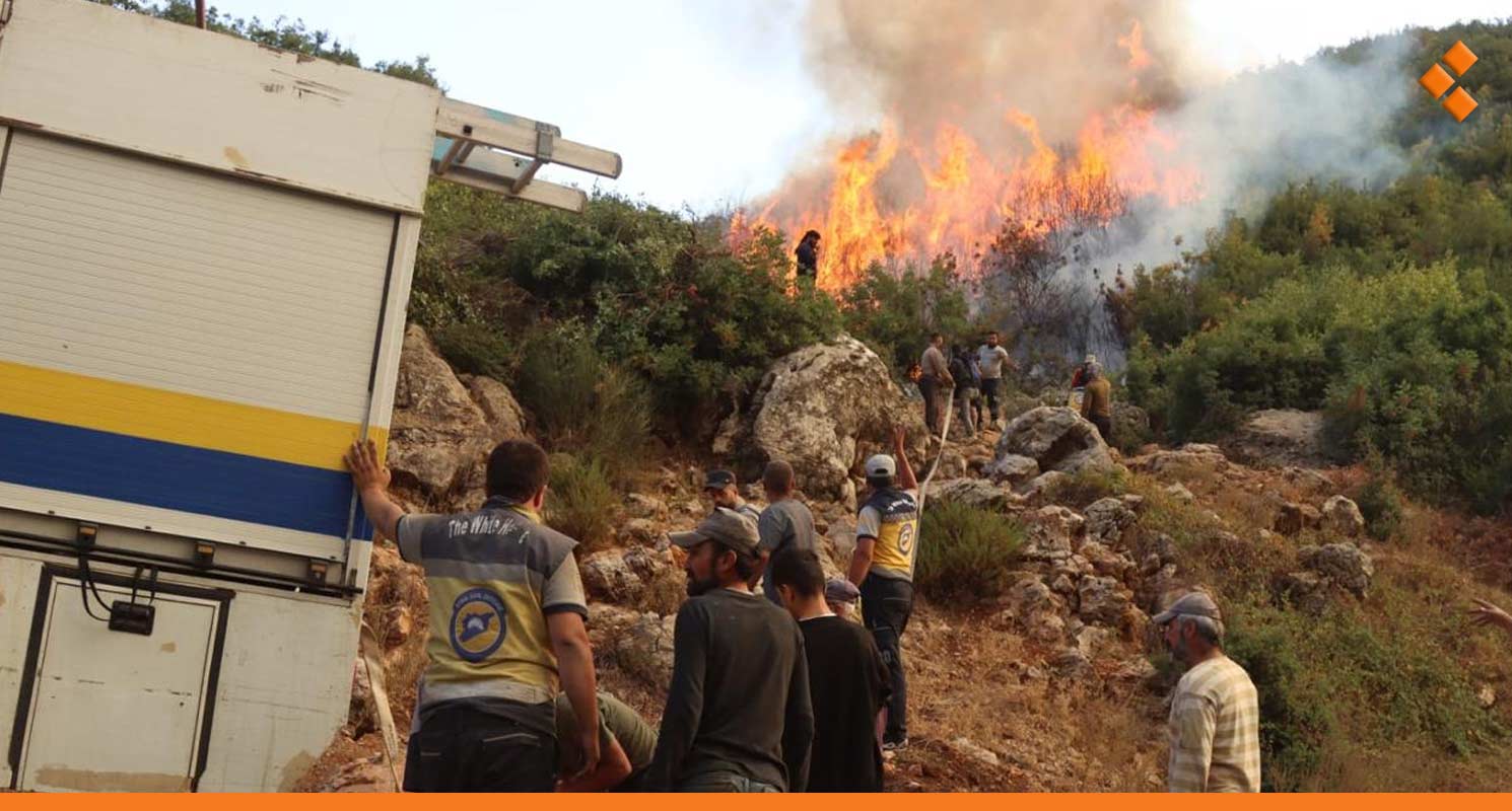 تواصل فرق الإطفاء والدفاع المدني السوري عمليات إخماد الحرائق المندلعة في في أرياف الساحل وحماة وإدلب الغربي.