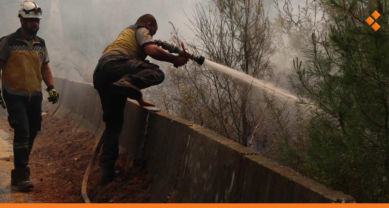 كما تمكنت فرق الإطفاء التابعة للدفاع المدني السوري، مساء أمس السبت، من السيطرة على العديد من بؤر النيران التي اندلعت في غابات جبل التركمان شمال شرقي ريف اللاذقية، في وقت كانت تواصل فيه الفرق العمل حتى منتصف ليل الأحد على إخماد بؤرتين كبيرتين وعدة بؤر أصغر.