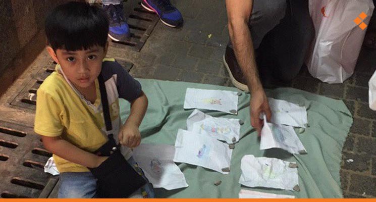 انتشر على مواقع التواصل الاجتماعي صورة لطفل في جدة يبيع لوحاته بريال واحد فقط لكل لوحة وثبتهم بالحجارة الصغيرة ليحافظ على رأس ماله الوحيد من الهواء، حتى لا يلجأ للتسول.
