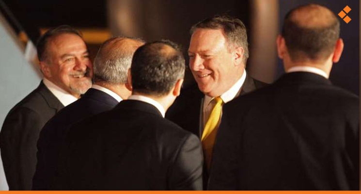 فقددعا بومبيو، خلال المؤتمر كل من الفلسطينيين و”الإسرائيليين” للعودة إلى المفاوضات، وجدد دعم بلاده لحل الدولتين، مشيراً إلى أنه هو الأقرب، إذا اتفقت الأطراف المختلفة على صيغة معينة، وذلك بعدما رفض الرئيس الفلسطيني محمود عباس العرض الأمريكي بتقديم خطة سلام “معدلة” وفقاً لما ذكرت صحيفة “الحياة” السعودية، حيث قال: “إن صفقة القرن ستكون بالاتفاق بين الفلسطينيين والإسرائيليين، بينما تلتزم الولايات المتحدة بتسهيل الأمر والعمل مع الأردن لإيجاد حل جيد للقضية الفلسطينية”.