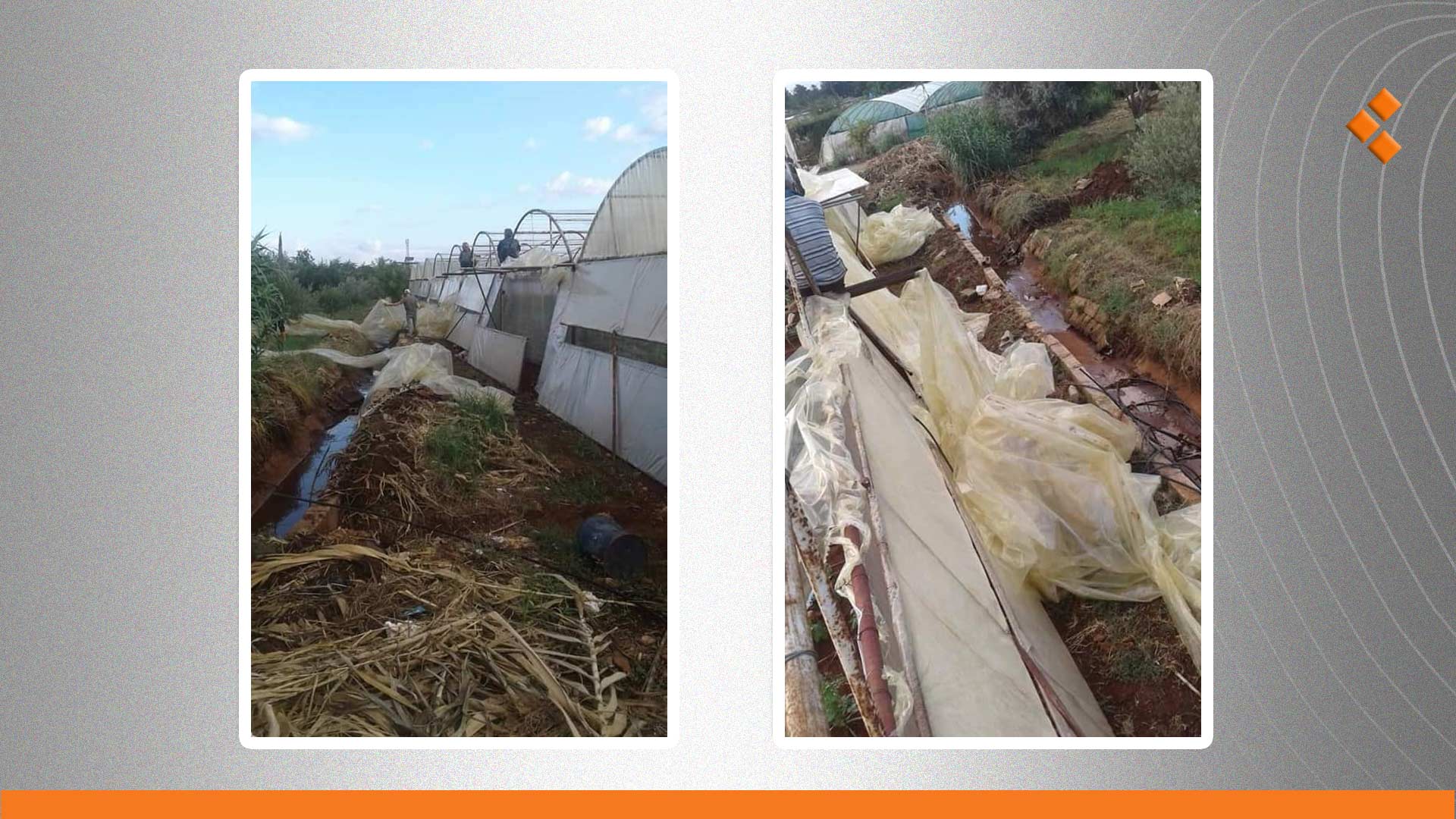وأشار سليمان الى أن البيوت البلاستيكية مزروعة بالبندورة وأن عدد المزارعين المتضررين بلغ 6، موضحاً أن لجان حصر الأضرار العائدة لصندوق الجفاف والكوارث الطبيعية تعمل على حصر الأضرار لتعويض المزارعين.