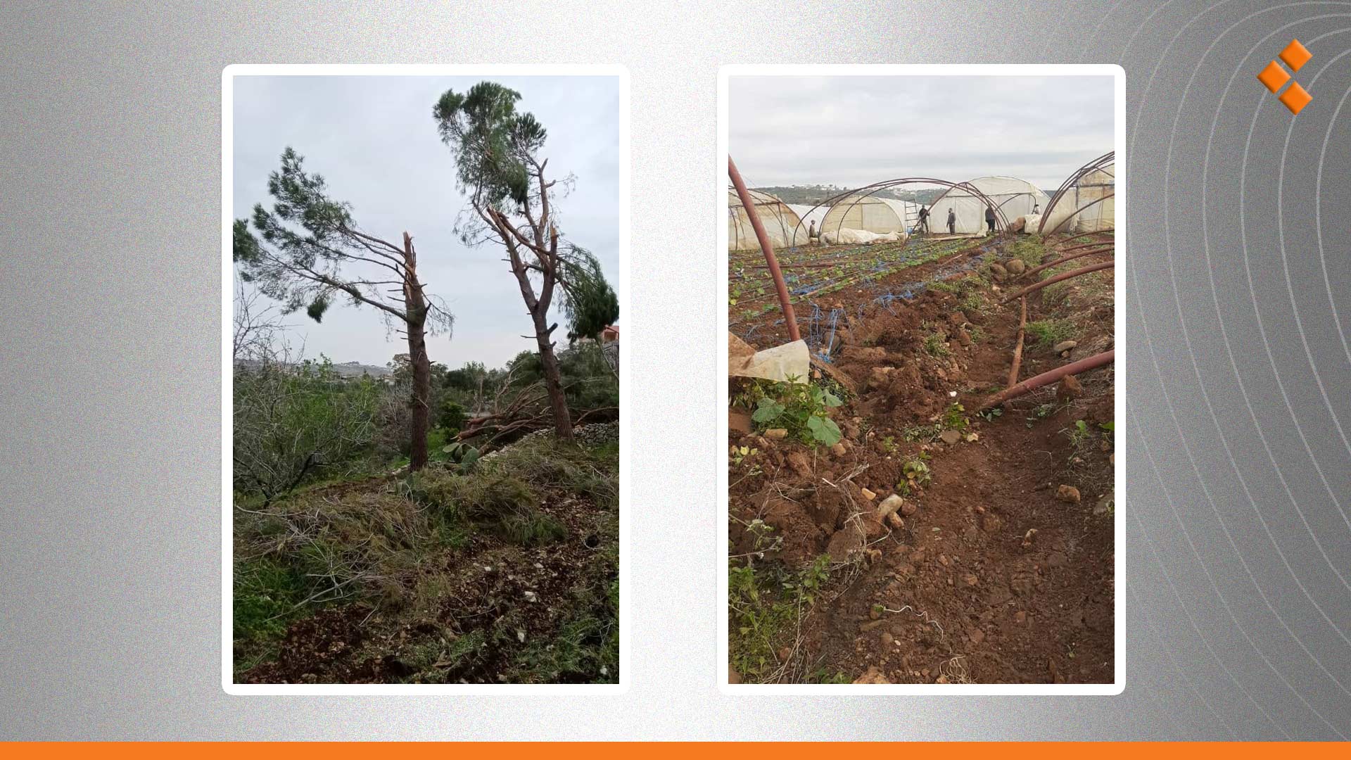 وأكد مدير الزراعة المهندس علي يونس لـ”أثر” أن تنين خلّف أضراراً كبيرة في أشجار الزيتون واللوز والصنوبر الثمري في قرى بالشيخ بدر، بعزرائيل، وادي الملوعة، وبحسب التقديرات الأولية للجان الفنية التي توجهت على الفور إلى القرى المتضررة جراء التنين، تبين تضرر حوالي 150 شجرة زيتون بأضرار جزئية بنسبة 50%، قلع 5 أشجار زيتون بشكل كامل، و4 أشجار صنوبر ثمري بنسبة 80%، وحوالي 15 شجرة لوز وغيرها.